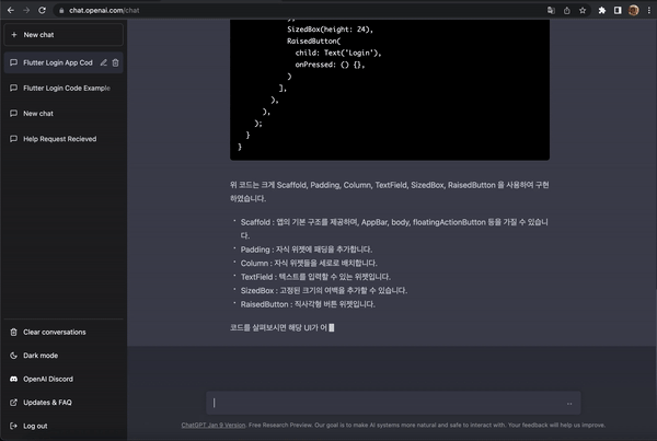 안녕하세요? 요즘 chatgpt가 매우 인기가 많습니다. chatgpt를 사용하여 간단한 플러터 앱을 만드는 과정을 정리해봤습니다.