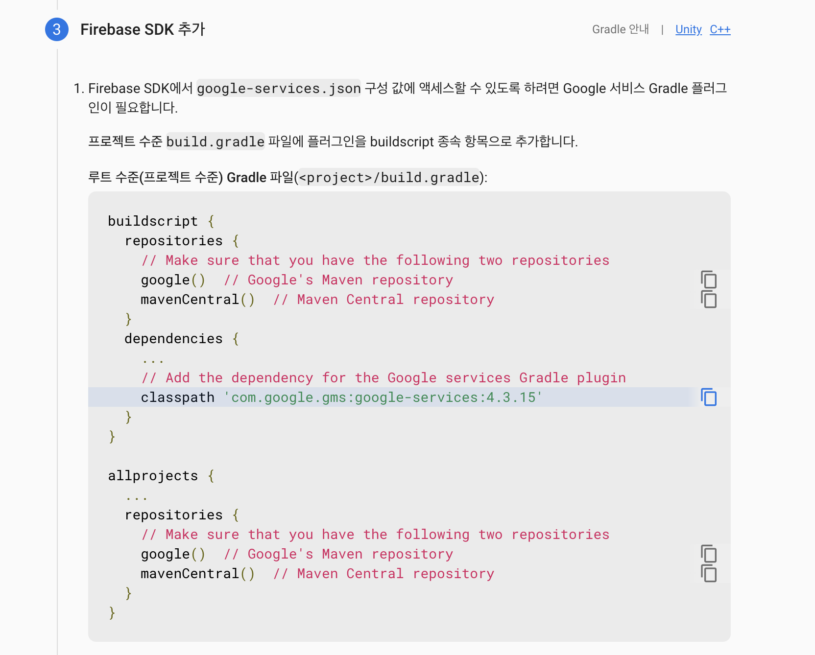 2-4.Android 앱에 Firebase를 추가합니다. 이거 이제 안해도 된다고 들었던 것 같은데 잘 모르겠네요 추가해보겠습니다.👀